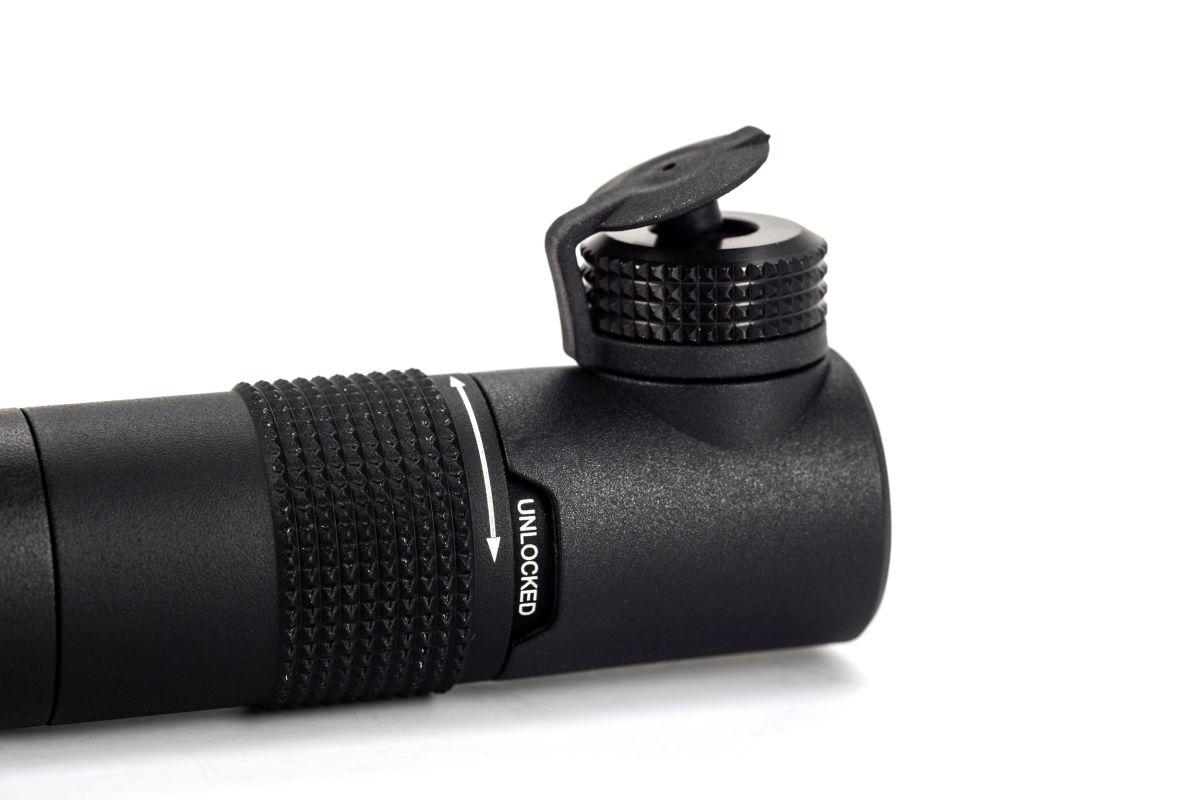 Klein, aber oho! Und dazu extrem kraftvoll: Unsere CNC-gedrehte Micro-Pumpe mit Twist-Lock-Ventilkopf für Presta- und Schrader-Ventile macht mit bis zu 120 psi ordentlich Druck. Es kommt eben doch nicht immer auf die Größe an.