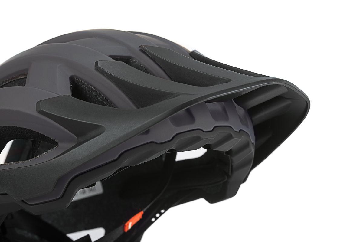 MTB Trail-Helm, zusätzlicher Schutz im Bereich des Hinterkopfes durch tiefgezogene Heckpartie, 18 große Belüftungsöffnungen, optimierte Ventilationskanäle, abnehmbares Visier, einhändig bedienbares und höhenverstellbares SILC 180 Fit System für eine optimale Passform, Double-In-Mould Konstruktion, Flat Divider für die bestmögliche Gurtbandführung, X-Lock Befestigungssystem, herausnehmbare und waschbare Polster, Rastersteckschloss mit Kinnpolster, Natural Fit Konzept, mattes Finish