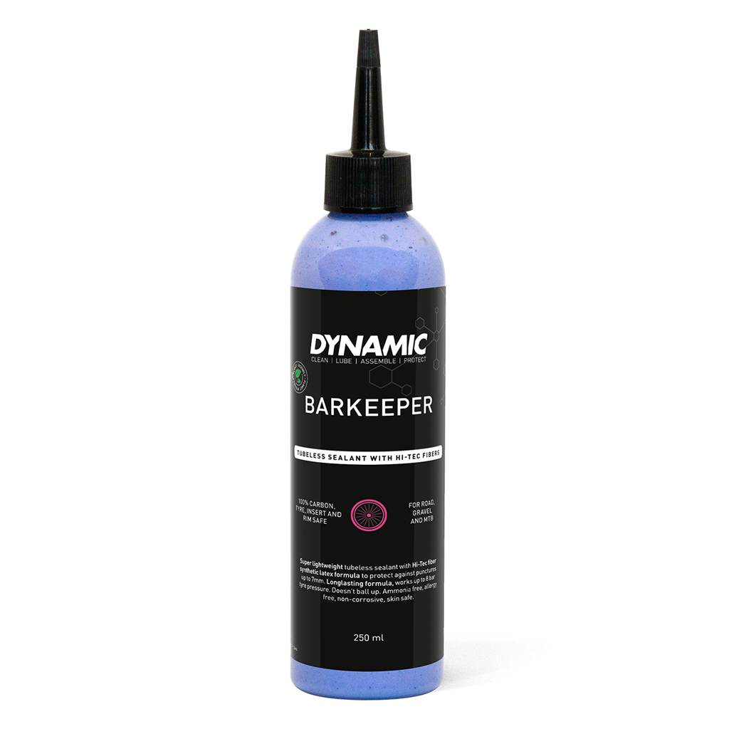 Superleichtes Tubeless-Dichtmilch mit Hi-Tech-Faser und Synthetik-Latex-Formel zum Schutz vor Reifenpannen bis zu 7 mm. Bar Keeper hält den Reifendruck auf dem gewünschten Niveau und sorgt dafür, dass du weiterfahren kannst. Langlebige Formel, die mit Profiteams entwickelt und getestet worden ist. Wirkt bei bis zu 8 bar Reifendruck und verklumpt nicht.Dynamic Barkeeper ist ein Tubeless-Dichtmilch aus synthetischem Latex mit Hi-Tech-Fasern, das vor Reifenpannen schützt und den Reifendruck auf dem gewünschten Niveau hält. Dank seiner einzigartigen Formel haftet es an der Innenseite der Reifenwände und dichtet die Verbindungen zwischen Reifen und Felge perfekt ab. Barkeeper hält länger als andere Tubeless Dichtmilch, verklumpt nicht und kann ohne Demontage des Reifens angewandt werden. Funktioniert in Reifen für Strasse-, Gravel- und MTB-Rädern, mit einem Druck zwischen 1 und 8 bar und bei Temperaturen zwischen -20°C und +50°C. 100% sicher in der Anwendung, ammoniakfrei, allergiefrei, nicht ätzend, hautverträglich.Anwendung: Barkeeper vor Gebrauch gut schütteln, um eine gleichmässige Verteilung der Hi-Tech Fiber Partikel zu gewährleisten. Montiere den Reifen auf die Felge und pump ihn zunächst ohne Dichtmilch auf. Im nächsten Schritt die Luft wieder aus dem Reifen lassen und Ventileinsatz entfernen. Füll die gewünschte Menge des Dichtmilch in den Reifen. Setz den Ventileinsatz wieder ein und pump den Reifen auf. Um das Dichtmilch im Inneren des Reifens und der Felge gut zu verteilen, raten wir dir eine kurze Fahrt oder das Drehen des Reifens. Gute Fahrt!