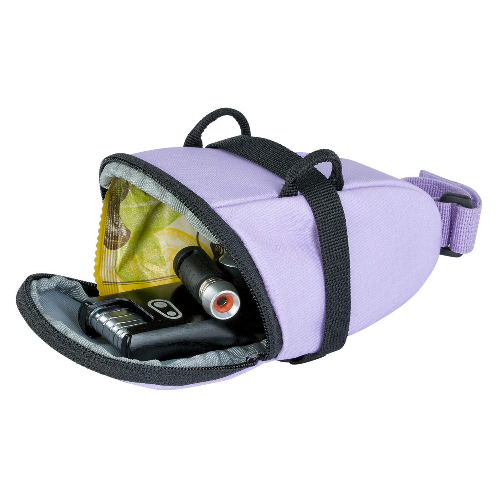 Extrem leichte Satteltasche für Rennrad-Schläuche und Reparatursets. Kleinteilfach (Mesh). Höhere Sichtbarkeit dank reflektierendem Logo-Druck Montage mit Schnalle