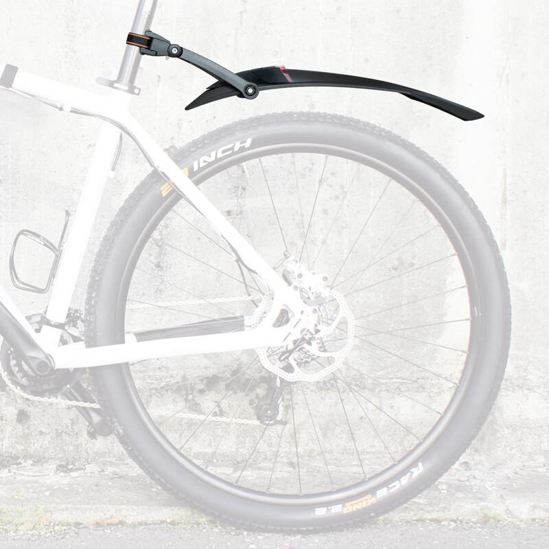 Das MTB-Schutzblech NIGHTBLADE aus schlagfestem Hochleistungskunststoff bietet dank des Frontspoilers und des extralangen Backspoilers nicht nur einen optimalen Spritzschutz. Durch das integrierte Rücklicht mit StVZO-Zulassung garantiert der Radschützer auch mehr Sicherheit im Straßenverkehr. Der Rückstrahler mit integriertem Akku ist herausnehmbar und kann einfach über USB mit neuer Energie geladen werden. Die Spoiler aus weicherem Kunststoff dienen gleichzeitig als Kantenschoner beim Auf- und Absteigen. Durch die einfache Quick-Release-Befestigung lässt sich das NIGHTBLADE mit Powerstraps an fast jede Sattelstütze montieren und durch die 2-Gelenk-Technik optimal ans Mountainbike anpassen.