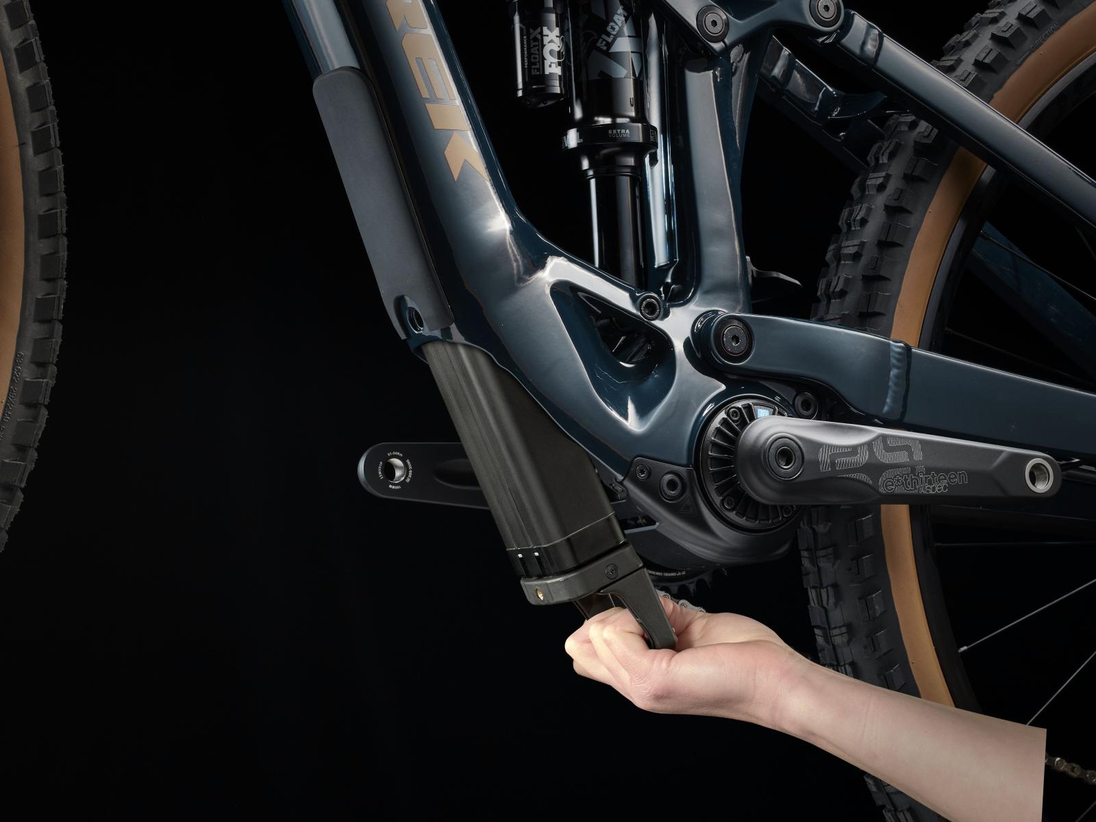 Einen Rahmen aus Alpha Platinum Aluminium mit TQ HPR50 Harmonic Pin-Ring Getriebe mit komplett im Rahmen verbautem, herausnehmbarem 360-Wh-Akku samt smartem Ladeanschluss. Gleichzeitig sorgen ein integriertes LED-Display und eine lenkermontierte Fernbedienung für intuitive Benutzungsfreundlichkeit, während eine FOX Rhythm 36 Gabel mit 150 mm Federweg, Float EVOL Luftfederung und GRIP-Dämpfung und ein FOX Performance Float X Hinterbaudämpfer mit 140 mm Federweg ein hochleistungsfähiges Fahrwerk bilden. Breite Bontrager Line Comp 30 Tubeless-Ready-Laufräder, ein Shimano XT 12fach-Antrieb, hydraulische Scheibenbremsen und eine Vari