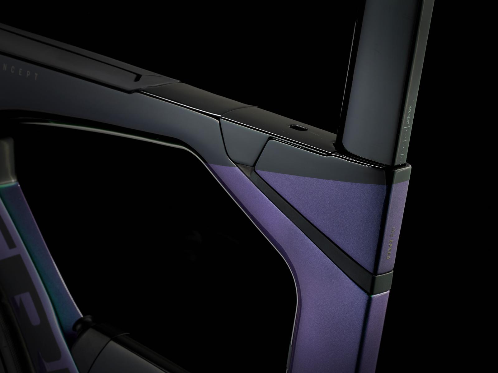 Dieses Speed Concept ist das schnellste Bike, das wir je getestet haben – und es fährt den Kurs in Kona sechs Minuten schneller als sein Vorgängermodell. Die aerodynamischen Kammtail Virtual Foil Rohrprofile des Rahmens aus ultraleichtem 800 Series OCLV Carbon durchschneiden die Luft.