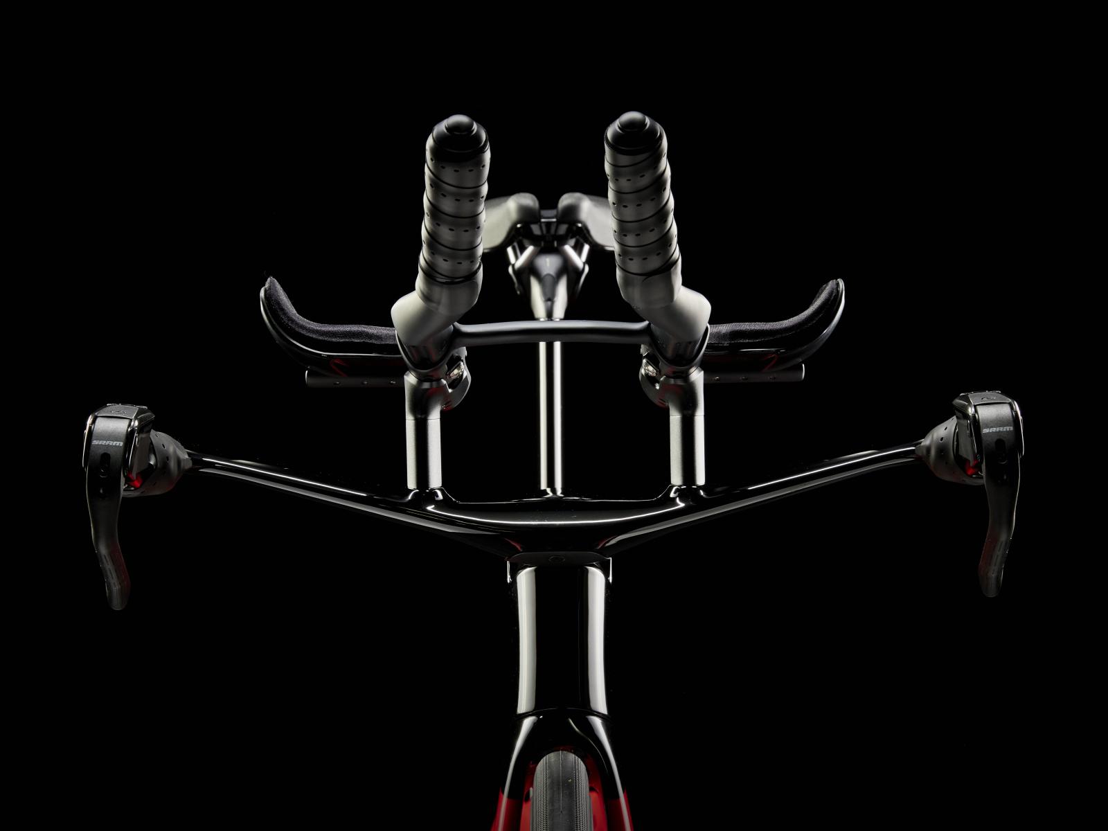 Einen ultraleichten Rahmen aus 800 Series OCLV Carbon, windschnittige Rohre mit Kammtail Virtual Foil-Profil (KVF), eine Speed Concept-Carbongabel mit aerodynamischem Profil, vibrationsdämpfendes IsoSpeed, integrierte Aufbewahrungslösungen für Verpflegung, Flüssigkeit und Pannenkit, einen drahtlosen, elektronischen SRAM Force AXS D2 12fach-Antrieb mit SRAM AXS Clics-Schalthebeln, einen SRAM Force AXS-Powermeter, einen vollständig integrierten Lenker samt Vorbau, einen triathlonspezifischen Bontrager Hilo Comp-Sattel für eine aggressive Aero-Sitzposition, Scheibenbremsen für zuverlässige Bremsleistung und Bontrager Aeolus Pro 51-