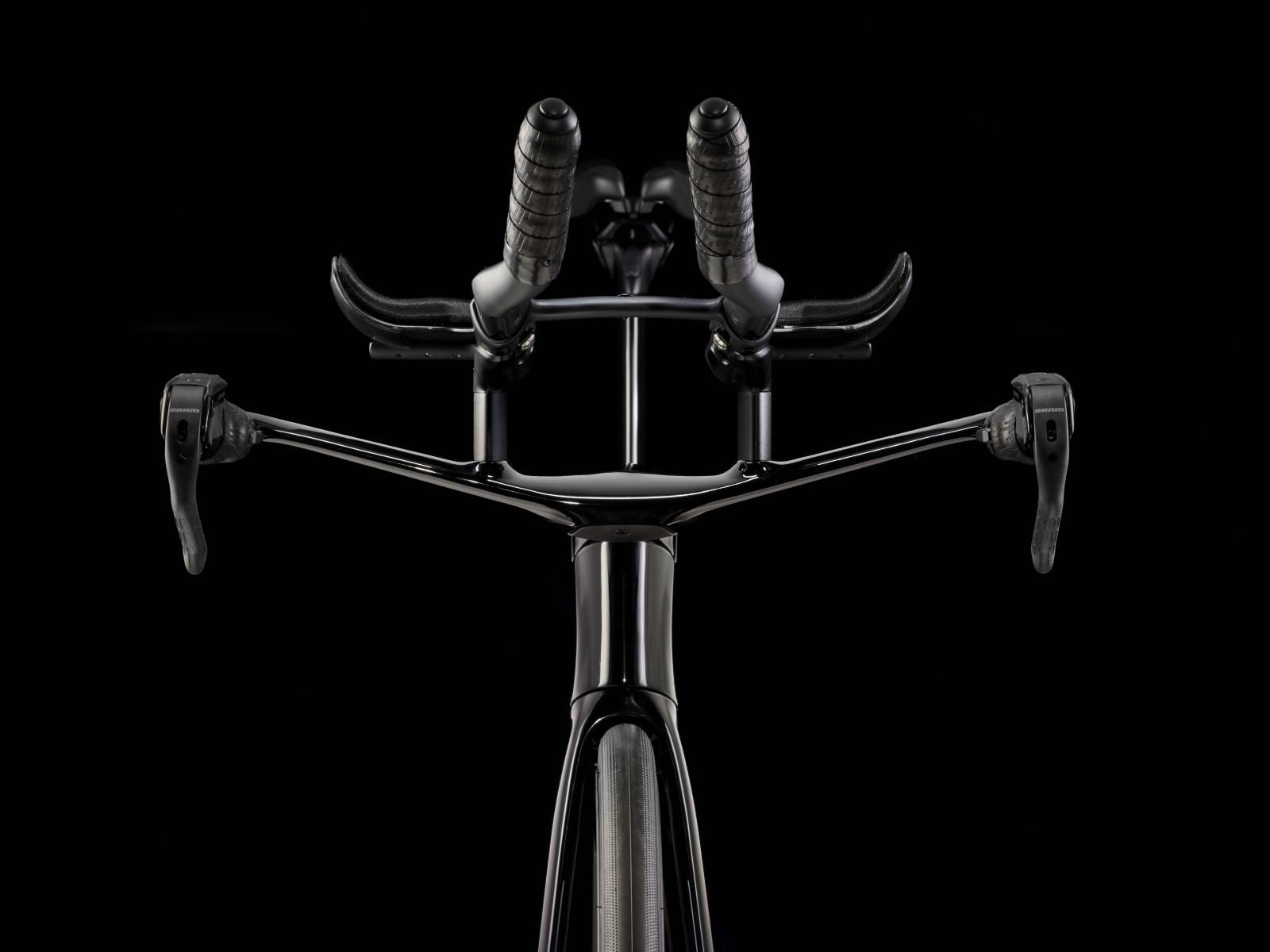 Einen ultraleichten Rahmen aus 800 Series OCLV Carbon, windschnittige Rohre mit Kammtail Virtual Foil Profil (KVF), eine Speed Concept Carbongabel mit aerodynamischem Profil, straßenglättendes IsoSpeed, integrierte Aufbewahrungslösungen für Verpflegung, Flüssigkeitsversorgung und Pannenkit, einen drahtlosen, elektronischen SRAM RED AXS 12fach-Antrieb der vorherigen Generation mit SRAM AXS Blips Schalthebeln, ein SRAM RED AXS Powermeter, eine integrierte Lenker/Vorbau-Einheit, einen triathlonspezifischen Bontrager Hilo Pro Carbonsattel, zuverlässige Scheibenbremsen und aerodynamische Bontrager Aeolus Pro 51 Laufräder aus OCLV Car
