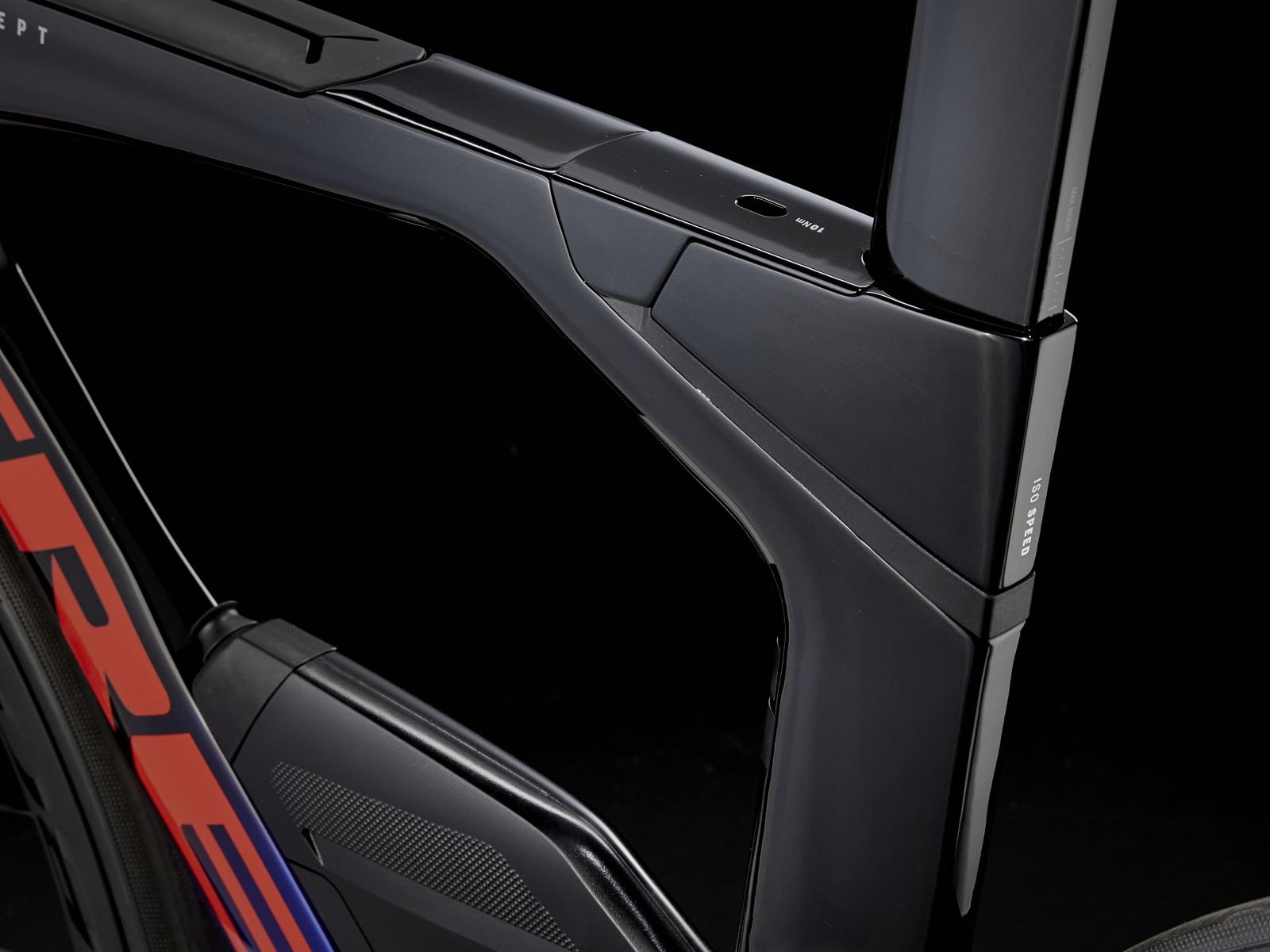 Einen ultraleichten Rahmen aus 800 Series OCLV Carbon, windschnittige Rohre mit Kammtail Virtual Foil-Profil (KVF), eine Speed Concept-Carbongabel mit aerodynamischem Profil, vibrationsdämpfendes IsoSpeed, integrierte aerodynamische Aufbewahrungslösungen für Verpflegung, Flüssigkeit und Pannenkit, einen drahtlosen, elektronischen SRAM Rival AXS 12fach-Antrieb mit SRAM AXS-Blips-Schalthebeln für eine aerodynamische Sitzposition beim Schalten, einen Rival AXS-Powermeter, einen vollständig integrierten Lenker samt Vorbau, einen triathlonspezifischen Bontrager Hilo Comp-Sattel für eine aggressive Aero-Sitzposition, zuverlässig zupac