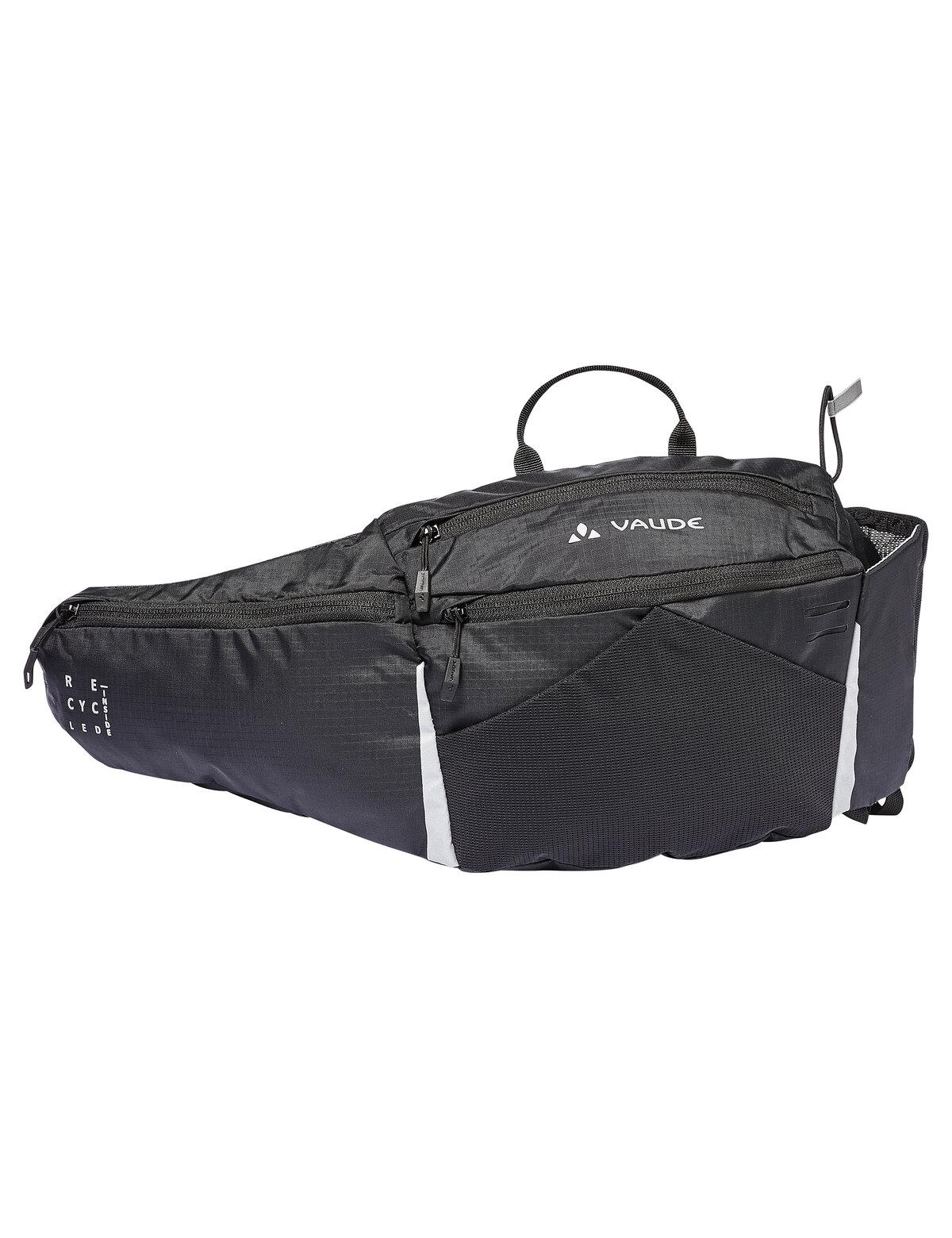 Mittelgroße, stabil und kompakt sitzende Hüfttasche mit 4 Liter Volumen und integriertem Flaschenhalter. Diese Tasche eignet sich für Berglauf, Nordic Walking und Langlauf, aber auch für kleinere Wandertouren, Stadtbesichtigungen, Radtouren und Ausflüge - denn hier finden auch Wander- oder Stadtführer, eine kleine Kamera, eine komprimierbare Windjacke und weitere Kleinutensilien ausreichend Platz. Selbst große Nalgene-Flaschen können im Big Attendant transportiert werden. Ausgestattet ist diese Hüfttasche mit einem großen Hauptfach, einem weiteren Frontfach und einer sehr elastischen Netztasche für den schnellen Zugriff auf Mütze oder Handschuhe, ohne die Tasche absetzen zu müssen. In die geräumigen Hüftflügel passen leicht erreichbar Smartphone, Geldbeutel, Sonnencreme und Energieriegel. Praktisch sind auch die reflektierenden Elemente und die Befestigungsmöglichkeit für ein Blinklicht. Eine Trinkflasche ist nicht im Lieferumfang enthalten. Der Big Attendant wurde umweltfreundlich aus überwiegend recyceltem Material hergestellt und wasserabweisend ohne Fluorcarbone (PFC) ausgerüstet. Das VAUDE Green Shape-Label steht für ein umweltfreundliches, funktionelles Produkt aus nachhaltigen und bluesign® zertifizierten Materialien.